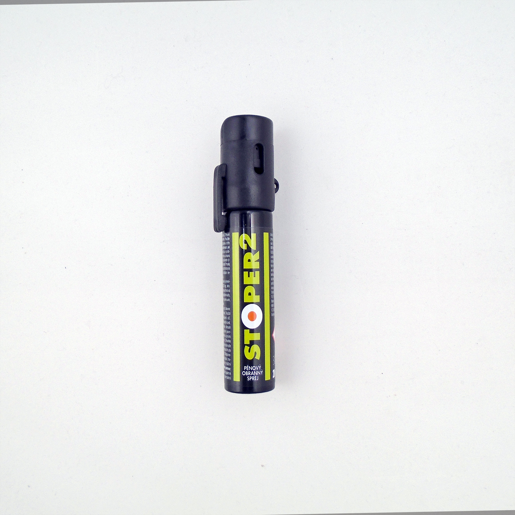 Stoper je tak účinný, že jedním dobře mířeným zásahem do obličeje může zastavit jakéhokoliv útočníka - člověka i psa. Stoper způsobí pokrytí obličeje pěnou, zajišťující okamžitý účinek na zasažené sliznice: dočasné oslepení, dušnost, dráždivý kašel a silné pálení pokožky. Obsahuje paprikový extrakt s vysokým podílem kapsaicinoidů (pro ilustraci - pálivá paprika obsahuje cca 5000 Scovillových jednotek pálivosti, účinná látka v tomto spreji obsahuje 2.000.000 Scovillových jednotek). Sprej má dosah 1,5-4m (podle velikosti spreje a povětrnostních podmínek), takže umožňuje vyhnout se přímému kontaktu s útočníkem. Je více odolný vůči povětrnotním vlivům, než ostratní spreje. Konstrukce a pojistka rozprašovače umožńuje jednoduché, bezpečné a intuitivní ovládání.