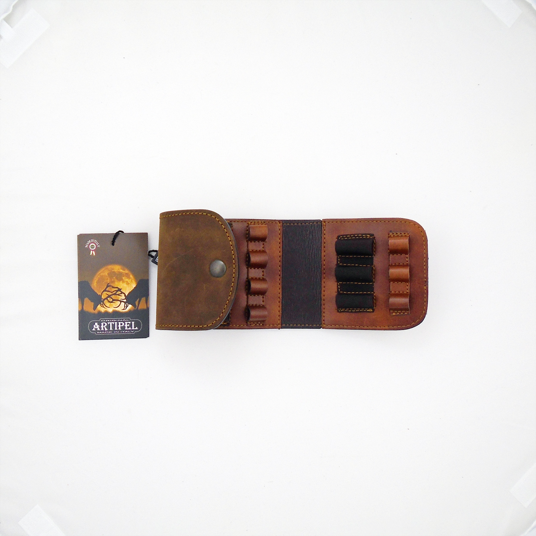 Nábojové pouzdro s vodovzdornou úpravou, pevně ušité, v efektu teletin a s elastickými kapsičkami. Kompletně podšité antikorozním materiálem - náboj nekoroduje. Určené pro 7 nábojů, ráže od 223 do 300WM.